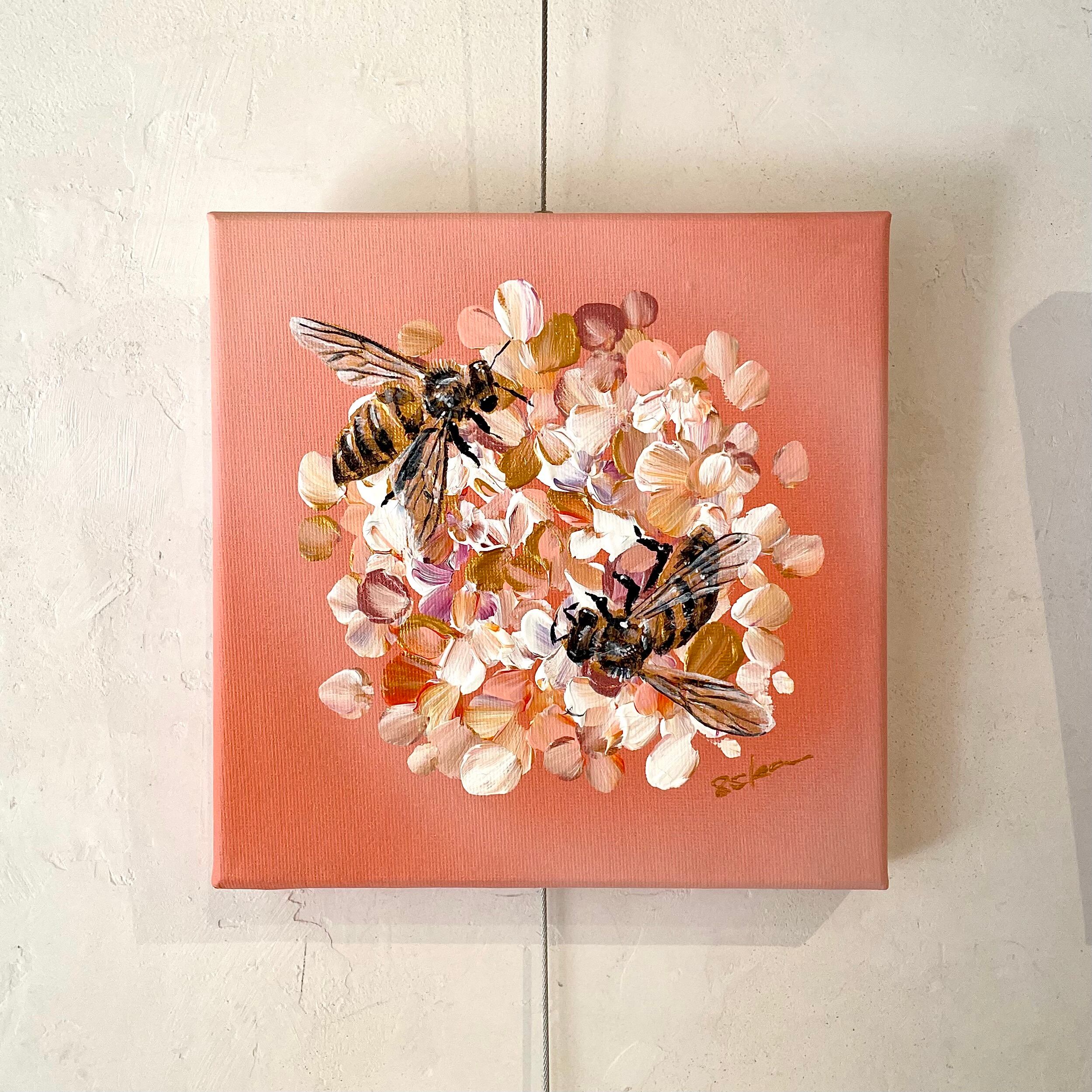このシリーズは、私の代表的なモチーフである蜂と、昔から大好きな紫陽花を一緒に描いたものです。